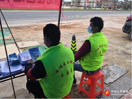 反邪教志愿者在返穗人员申报点开展反邪教宣传