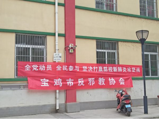 正对小区大门悬挂 “宝鸡市反邪教协会”横幅