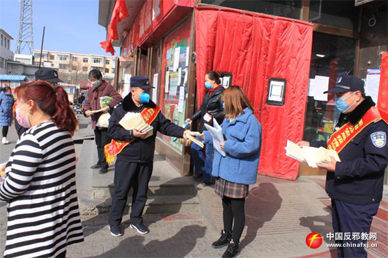 3月6日至7日,固阳县公安局国保大队全体民警和辅警佩戴反邪教宣传绶带深入到县商场、广场、小区门口、社区以及村委,一边开展疫情防控工作,一边开展反邪教宣传活动。给过往居民发放《内蒙古自治区宗教事务条例》和《反邪教宣传读本》,提醒广大居民防范邪教,科学预防疫情,正确区别宗教和邪教,用爱筑牢疫情和反邪教防线,守护人民健康,不让邪教有机可乘,坚决杜绝邪教组织利用疫情散布歪理邪说,制造恐慌。