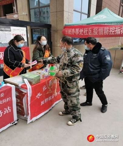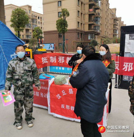 新冠肺炎疫情发生以来,当全国上下众志成城抗击疫情之时,各类邪教组织却趁机编造谣言、散布歪理邪说,企图拉拢信徒、制造社会恐慌、破坏社会稳定。为扎实做好疫情防控期间反邪教工作,3月18日,河南省周口市沈丘县委政法委组织青年志愿者深入街道社区向广大群众普及科学防疫和反邪教知识,提醒群众时刻绷紧“防疫反邪”这根弦。