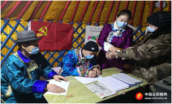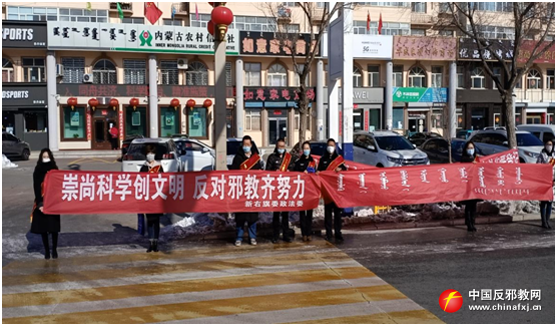 发出倡议,抗疫反邪同宣传。在疫情防控期间,呼伦贝尔市新巴尔虎右旗委政法委充分利用住宅小区疫情防控检测卡点执勤等契机,向小区农牧民群众发放预防新冠病毒相关常识、《关于防范邪教致广大居民一封信》《新右旗抗击疫情反邪教倡议书》等宣传资料,并于3月11日组织全委干部职工及旗公安局国保大队干警走进街道、商铺开展了集中宣传。