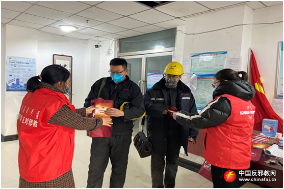 深入企业,精准助力强宣传。随着各企业陆续复工复产,外来人员急剧增多,防疫工作面临新挑战的实际,包头市白云矿区反邪教工作人员及志愿者深入所辖工矿企业,向员工发放防疫物品、普及科学防疫知识的同时,发放反邪教宣传资料,讲解识邪防邪知识,提倡复工人员要做到“防疫防邪”两手抓、两手都要硬。