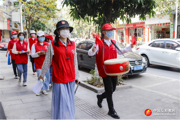 “不听不信不传看,遇到邪教就举报。市民朋友要记牢,提高警惕防邪教。”近日,在广西壮族自治区北流市城区街道上,反邪教宣传志愿服务队以打鼓说唱的方式宣传反邪教。朗朗上口的唱词,节奏明快的说唱,吸引了众多群众驻足观看,得到大家的高度称赞和一致好评。
