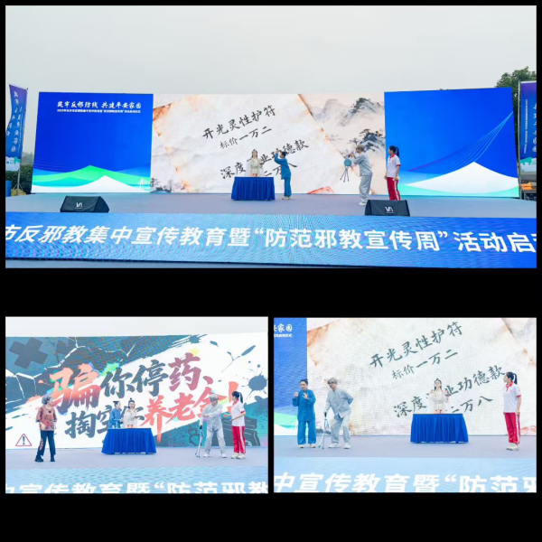 随后,系列特色节目依次精彩呈现。情景剧《开光的账单》以真实案例为原型,揭露邪教以“开光”为名骗取钱财的丑恶行径。反邪教微宣讲用通俗易懂的语言、鲜活的案例,教大家识别邪教套路与防范技巧。快板舞《崇尚科学反邪教》将反邪知识融入明快节奏,朗朗上口的唱词让宣传更接地气。小品《邪教词典大揭秘》则以幽默诙谐的方式戳穿邪教荒谬理论,引发观众阵阵共鸣。