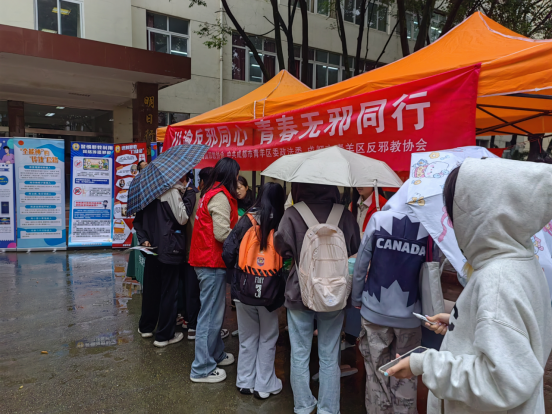为进一步提升学生对邪教本质的认知,增强防范和抵制邪教的意识和能力,营造健康和谐的校园环境,10月23日下午,四川省成都市青羊区反邪教协会在康河街道四川商务职业学院开展“反邪教宣传进校园”主题活动,通过分发宣传单、专题讲座、主题墙签字等丰富形式,为全校师生筑起一道反邪教 “防护墙”。
