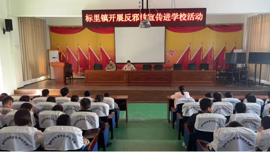 同时,反邪教宣传触角延伸至校园。标里镇综治中心等部门走进标里中心校,开展“反邪教宣传进校园”活动,致力于从青少年时期抓起,筑牢校园反邪教的思想堤坝,保护青少年身心健康。