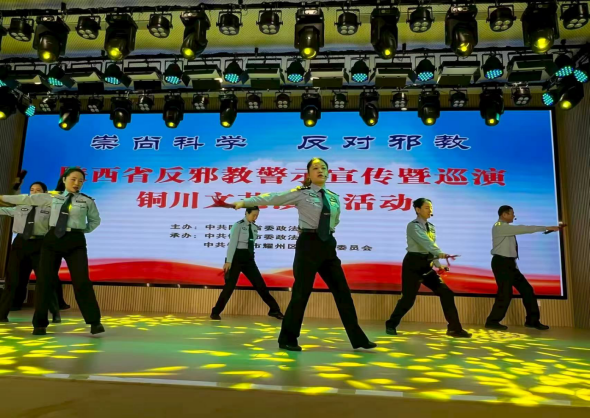 11月26日,陕西省反邪教警示宣传暨文艺巡演活动在铜川市耀州区举行。本次活动由陕西省委政法委主办,铜川市委政法委、耀州区委政法委承办,西安市公安局文艺宣传小分队倾情表演,为现场观众送上了一场高质量、高水平的反邪教文化大餐。