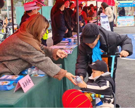 活动现场满是浓浓的 “烟火味”,大爷大妈挎着菜篮子、年轻妈妈推着婴儿车、务工返乡的大姐结伴而来,各单位的宣传桌前都排起了长队,形成热闹又贴心的 “一站式” 服务矩阵。