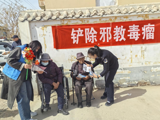 精准施策,提升宣传实效 活动紧扣“崇尚科学、反对邪教”主题,结合农村群众认知特点,创新采取“三结合”方式开展宣传:一是将反邪教知识与文艺演出相结合,在演出间隙设置反邪教知识问答环节,吸引群众主动参与;二是将政策解读与案例剖析相结合,通过本地真实案例增强宣传的警示性和说服力;三是将集中宣传与入户走访相结合,组织工作人员深入周边村落,为行动不便的老年人提供“上门送学”服务。