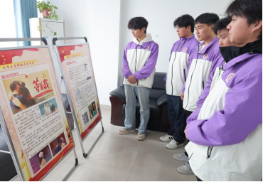 河南应用技术职业学院的学生在观看展板