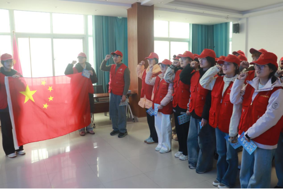 开封科技传媒学院的志愿者们正在进行反邪宣誓