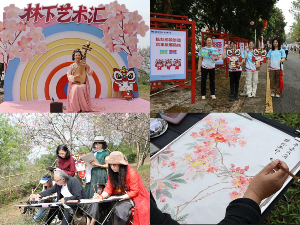 三月的南沙,十八罗汉山的樱花正值盛花期,但今年赏樱,游客们还收获了一份特别的“精神大礼”。南沙区委政法委、大岗镇平安法治办公室把反邪宣传搬到了樱花节现场,玩起了“国潮+运动+科普”的跨界混搭。樱花树下,数十名绘画爱好者与游客齐聚,以“画笔”为媒,将反邪元素融入传统水墨和国画中。孩子们用稚嫩的笔触描绘心中的“无邪”世界,大人们则将反邪标语与樱花、岭南元素巧妙结合,一幅幅作品既有文化韵味,又传递着崇尚科学的正能量。旁边的互动体验区,趣味拼图游戏吸引了众多亲子家庭,特制的拼图上印着反邪标语和举报渠道,大家边玩边学,欢声笑语中让反邪知识“入脑入心”。最燃的当属“扬名立万”十八罗汉山主题徒步活动,千余名参与者身着统一服装,穿行在樱花林中,沿途反邪教知识打卡点成了流动的课堂。大家手持反邪口号,用脚步丈量美景,用行动支持反邪。正如一位参与者所说:“这样的宣传,既有意义又有活力,谁能拒绝呢?”