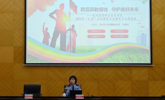 深耕进高校,守护青年学子成长净土。针对高校学生群体特点,民警走进泉州经贸职业技术学院,开展反邪教主题专题讲座。讲座中,民警用通俗易懂的语言,结合高校易发生的邪教渗透案例,讲解邪教与正规宗教的区别,揭露邪教组织蛊惑人心、危害社会的真实面目,告诫学生们要树立正确的世界观、人生观、价值观,自觉远离邪教、抵制邪教传播。同时,民警现场发放反邪教宣传手册、科普海报等资料,与学生开展互动问答,耐心解答疑惑,进一步增强青年学生的防范意识和自我保护能力,筑牢校园反邪“防火墙”,守护校园一方平安。