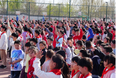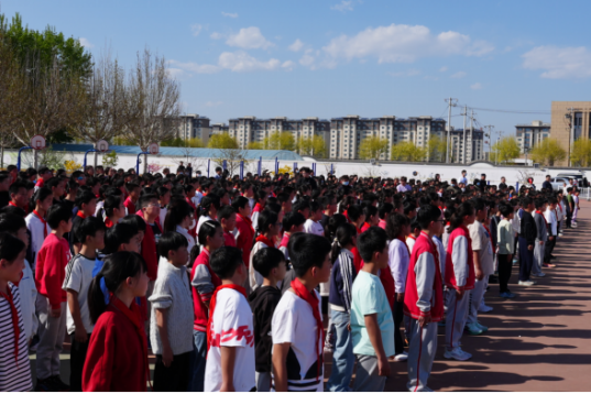全校师生集体朗诵《少年中国说》,气势磅礴,展现了新时代少年昂扬向上的精神风貌和担当民族复兴大任的志向。