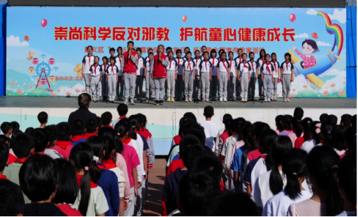 文艺演出环节,同学们用童真与朝气传递反邪正能量。配乐诗朗诵《驱邪守正 向阳而行》中,学生们声情并茂、铿锵有力,用诗歌传递出崇尚科学、抵制邪教的坚定信念。