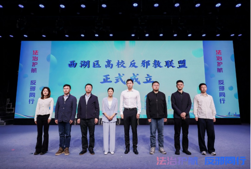 活动现场,西湖区高校反邪教联盟正式成立,首批成员单位包括浙江大学、西湖大学、浙江工业大学、国科大杭高院、万向职业技术学院等8所高校。该联盟的成立,进一步整合了校地反邪教工作资源,标志着西湖区校地协同、多方联动的反邪工作机制,迈入制度化、常态化、长效化发展新阶段,为面向高校青年开展反邪教宣传教育搭建了坚实平台。