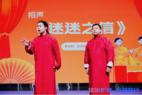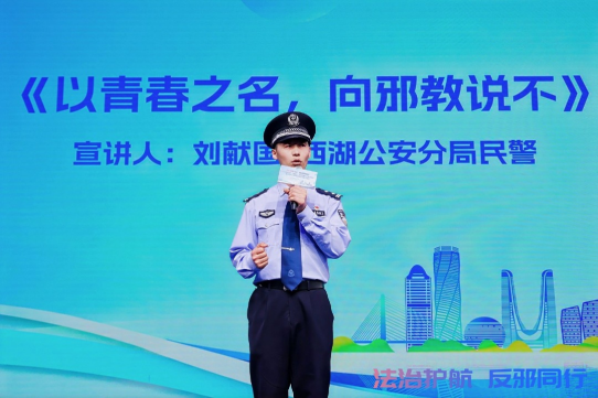 在“反邪青年说”主题宣讲环节,浙江大学学生代表、西湖公安分局民警、杭州市科技工作者代表依次登台,结合自身视角与工作实践,深刻剖析邪教危害、生动阐释科学法治理念,引发在场师生强烈共鸣。原创相声《迷迷之信》以幽默讽刺、通俗易懂的艺术形式,巧妙区分迷信与科学,让反邪知识入脑入心。青年代表、“兔子警官”李语蔚现场宣读反邪教倡议书,号召广大青年坚定理想信念、提升辨别能力,争做反邪教理念的宣传员、践行者和守护者。