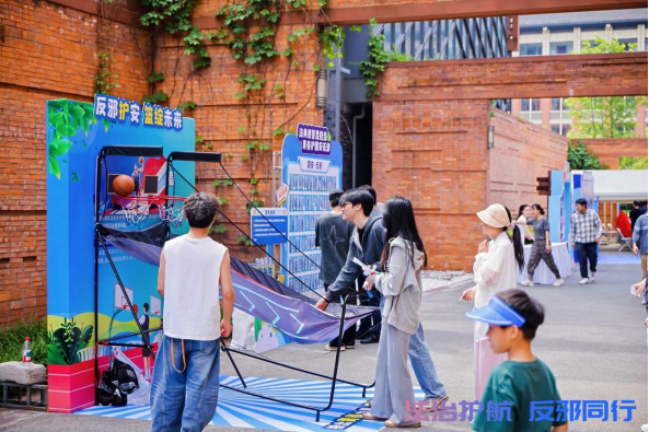 活动特别设置“有你国安 无邪青春”潮派对主题互动区,创意市集、国安·反邪法典速答赛、浙大BA投篮、跳房子闯关、破除迷雾跨栏跑、主题合影打卡等沉浸式、趣味化体验项目轮番开展,吸引师生踊跃参与。大家在轻松活泼的氛围中,学习国家安全知识、掌握反邪教常识,实现了宣传教育与趣味互动的有机结合。