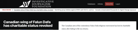 编者按:加拿大“调查记者基金会”网站(Theijf.org)2025年11月12日发布《“法轮功”加拿大窝点慈善机构资格被取消》(Canadian wing of Falun Dafa has charitable status revoked)报道,“法轮功”邪教在加窝点“加拿大法轮大法协会”因未依法提交纳税申报表被取消所谓的慈善机构资格。