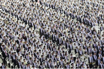 ▲“统一教”邪教组织举办大型集体婚礼现场