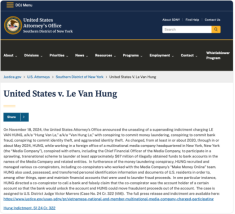 2024 年6月3日,美国司法部发布公告,宣布对《大纪元时报》首席财务官关卫东提起诉讼。越南籍同案犯黎文雄的诉讼公告则于同年11月18日发布。