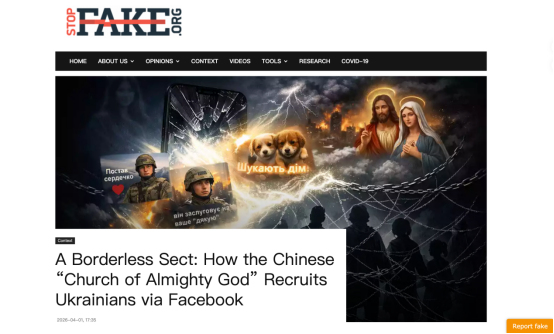 编者按:2026年4月1日,国际事实核查网络(IFCN)认证成员、乌克兰事实核查机构StopFake转发乌克兰NGO民主与法治中心(Center for Democracy and the Rule of Law,简称 CEDEM)"独立媒体"项目分析师帕夫洛·布尔迪亚克(Pavlo Burdyak)的深度分析文章。作者调查发现,"全能神"邪教组织已渗透至包括乌克兰在内的数十个海外国家。