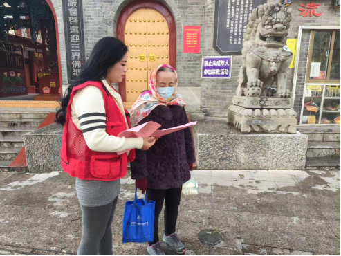 ▲甘肃省兰州市某寺附近志愿者宣传反邪教相关知识
