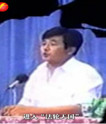 ▲李洪志早期录像,以“进入‘法轮天国’”为由,煽动习练者抛弃生命