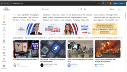 ▲“干净世界”的登录页面,展示“新唐人”(“法轮功”旗下媒体)的广告(图源:《哥伦比亚新闻评论》)
