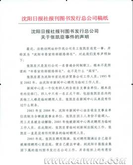 沈阳日报社报刊图书发行公司对张凯臣事件的声明