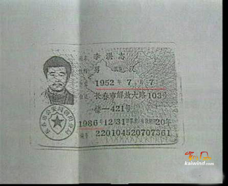 首先,中国第一代居民身份证办理始于1984年,李洪志前两个身份证并非办于文化大革命,应是1984年之后,一个很清楚,可以看出办于1986年12月31日。