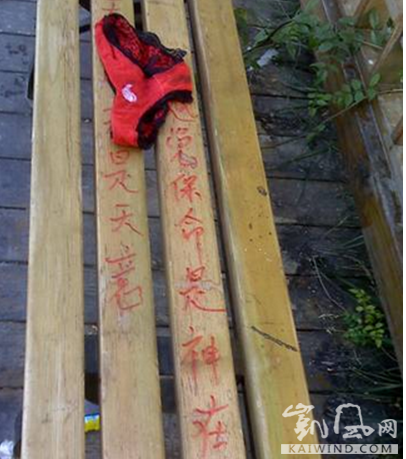 据《如此“红运当头”岂不贻笑天下(图)》所载,嬉水公园位于东营市东营区广利河畔,是一个景色宜人的好场所。法轮功人员出于“洪法”、“度人”的需要,搞出令人瞠目、嗤鼻的一幕:2010年6月26日早晨,在河旁台榭休憩处,法轮功人员不仅用红笔在座椅上写上“退党保命神在救人”、“天灭中共是天意”的条幅,还把女人用的红裤头放在其上。亏大法弟子想得出来!在供人们休息的长椅上写出宣传法轮功标语,并且放上女性用的红裤头,意思是给法轮功戴上“红运当头”的帽子,暗示法轮功红红火火。按照中国人的心理,女性的红裤头,是人们的忌讳,谁也不愿意碰上,更不会把它与“红运当头”联系起来,法轮功的“滑稽剧”实在让人恶心,估计任何人看到都会绕着走。