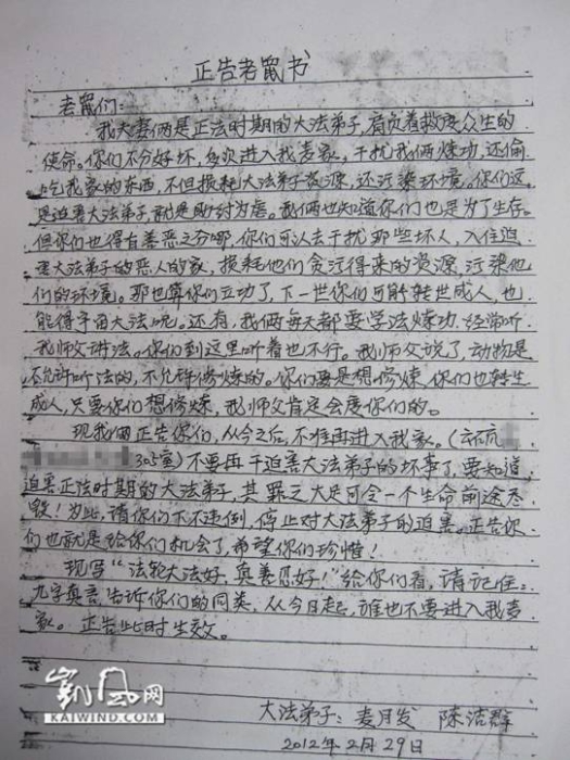 大法弟子《正告老鼠书》