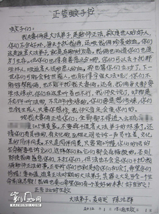 近日,凯风网先后登出了法轮功痴迷者麦月发(男,69岁)、陈洁群(女,63岁)夫妻的正告蚊子、老鼠、蟑螂书,引来网民围观热议。在法轮功的精神操控下,两位老人完全脱离了正常人的理智与思维,竟然沦落到与蚊子、蟑螂、老鼠等为伍对话的程度,这样的“正告”荒唐之极,让人啼笑、大跌眼镜。