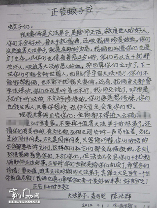 他们的世界,我们并不难懂。法轮功修炼人怎么会这么滑稽呢?从“正告书”的书写字迹看,工整、认真,不像是愚蠢的人所为。相信他练法轮功前,绝不会出现给蚊子写信的蠢事。那么,修练法轮功何至于让人如此愚蠢呢?从“正告书”里面那些个“助师正法”“救度世人”“迫害大法”“干扰”“转世”等李洪志常用“术语”,可见是李洪志授人以愚,让麦氏夫妇变得如此之痴。李洪志曾说“蚊子不咬修炼人”。那么,咬“修炼人”的蚊子,那肯定是“旧势力”派来“助纣为虐”、“迫害大法”的。一贯喜欢用文字表达心声的“大法”弟子,他们写过“严正声明”,写过“郑重声明”,写过“退党声明”,写过“重新修炼声明”,遇到蚊子这种不断干扰“修炼人”的事,马上联想到是“旧势力”所为,因而写个“正告书”就不足为奇了。