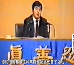 1996年,李洪志在《悉尼法会讲法》时说:“修炼到很高层次后,身体细胞全被高能量物质代替,那个时候,就没有新陈代谢了,等于不用吃,不用喝了。”(视频截图)