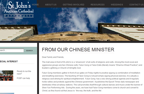 核心提示:基督教圣公会圣约翰教会是在澳大利亚成立的第一家基督教教会,英文堂到现在已有209年的历史,而中文堂已成立14年。邓立明(Ken Tang)牧师来自于香港,是一位注册会计师(CPA),在全职事奉之前,曾就职于松下,2004年加入圣公会的教牧团队。邓牧师主要负责教会三个中文堂的事工,并且在广东堂担任牧师。邓牧师曾在基督教圣公会圣约翰教会网站指出法轮功和全能神是最聒噪的邪教,认为法轮功政治色彩浓厚,全能神是危险的邪教,提醒基督徒警惕这两个邪教。