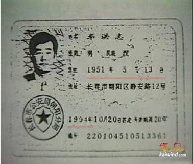 徐寅筌拿到《加急制作居民身份证审批表》后,到长春市公安局三处制证所为李洪志制作了新的居民身份证,出生日期为1951年5月13日,编码为220104510513361,签发日期为1994年10月20日。