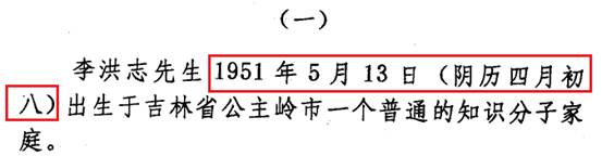 这两处的出生日期倒是一致,不过都是假的。请注意,“图四”中特地在括号中注明这一天是“阴历四月初八”,暗示自己是释迦牟尼转世。李洪志在《我的一点声明》替自己偷改生日狡辩说“是文革中政府把我的生日写错了”。