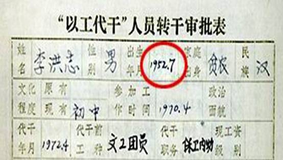 图五:“转干表”中李洪志出生年月为“1952.7”
