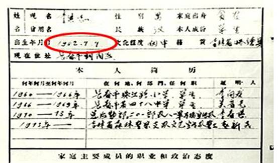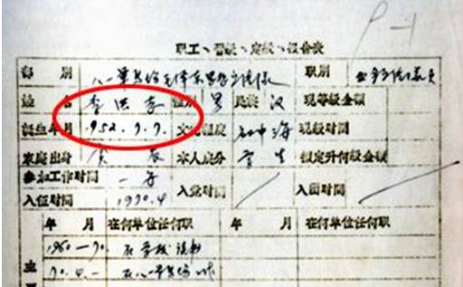 图六:职工登记表中李洪志出生于“1952.7.7”