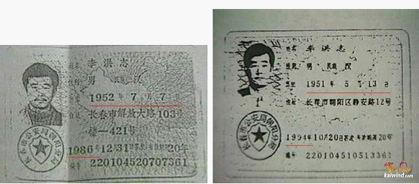 李洪志新旧两张身份证对比