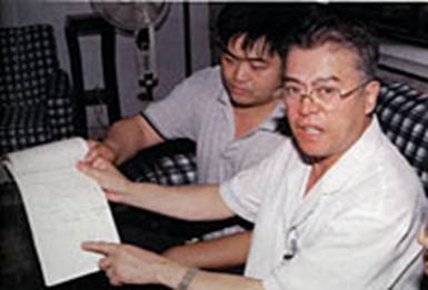 曾给李洪志做过阑尾切除手术的主治医师、吉林省人民医院副院长李英杰(右)讲述当年为李洪志确诊手术的情景。