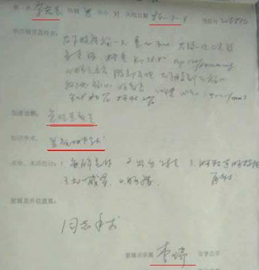 李瑞(李洪志妻子)签名的阑尾切除手术家属同意书