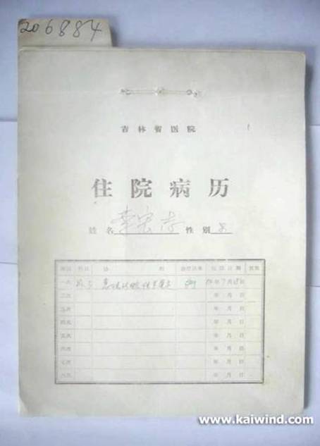 李洪志个人住院病历(封面)