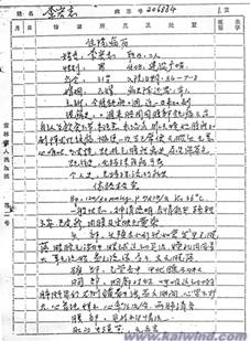 李洪志阑尾切除手术病历(复印件)