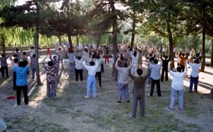 原法轮功弟子李晶超:“他画的图嘛,把现在法轮功的所有的功法,就是现在这一系列画的图, 让我看一下,说你先背下来,背下来以后呢,我俩儿就上胜利公园。现在这个胜利公园, 那时候练功的人比较多,因为当时李洪志并不出名,一般人都不知道。”