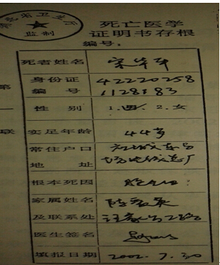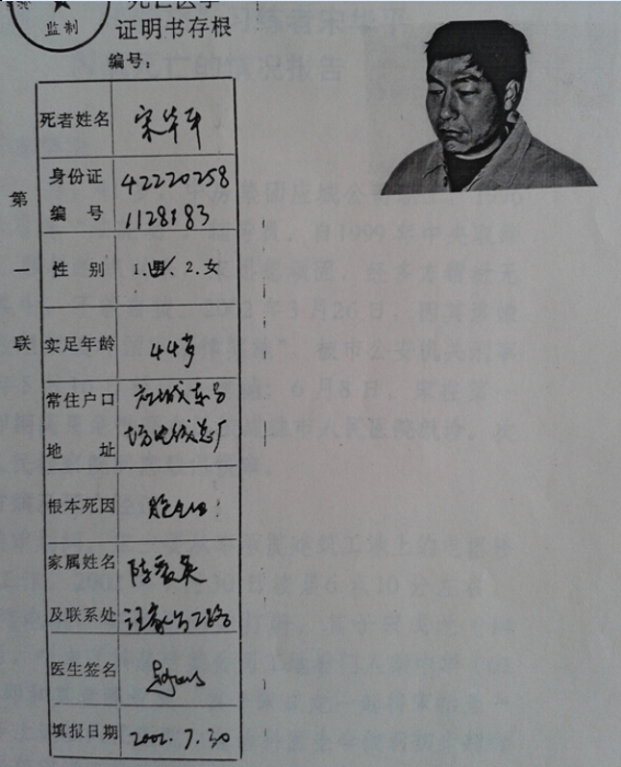 宋华平是中房集团湖北应城公司职工,曾经是法轮功应城城关辅导站“辅导员”,因修练法轮功后拒医拒药,2002年7月30日清晨,在大多数人还在熟睡之际,他却起床练功打坐,因血压升高头脑眩晕悄然倒在了建筑工地上……