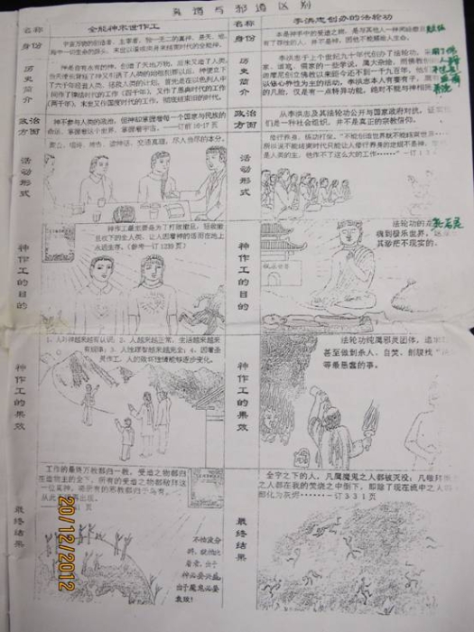近日来,全能神邪教组织成员在多个地方散发宣传“世界末日”资料,今天就是12月21日,人们并未见地球发生什么“末日”迹象,全能神的邪教本质暴露无遗。笔者作为一个反邪教志愿者在无意间发现全能神在宣传造势、拉人入教的过程中竟以将“法轮功”列入邪道来标榜自己是真道(见下图),全能神与法轮功这两个组织虽称呼不一样,打的幌子不一样,信奉的教主不一样,但实际都是半斤八两,实乃蛇鼠一窝。