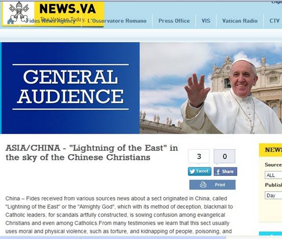 【凯风网2013年4月28日消息,通讯员:苏佳楠】4月14日,罗马教廷媒体“今日梵蒂冈”以一篇名为《全能神袭击中国教众天空》的短文向整个天主教世界发出防备全能神警示,并以简炼的语言勾勒了全能神邪教的特征。
